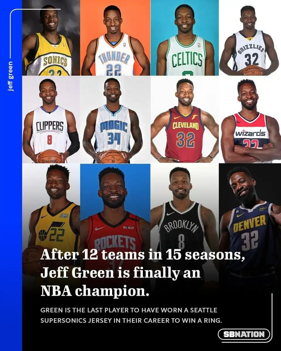 格林职业生涯效力过多支球队,包括雷霆、凯尔特人、灰熊、魔术、掘金等。2022-23赛季,他随掘金队夺得总冠军,终于圆了冠军梦。